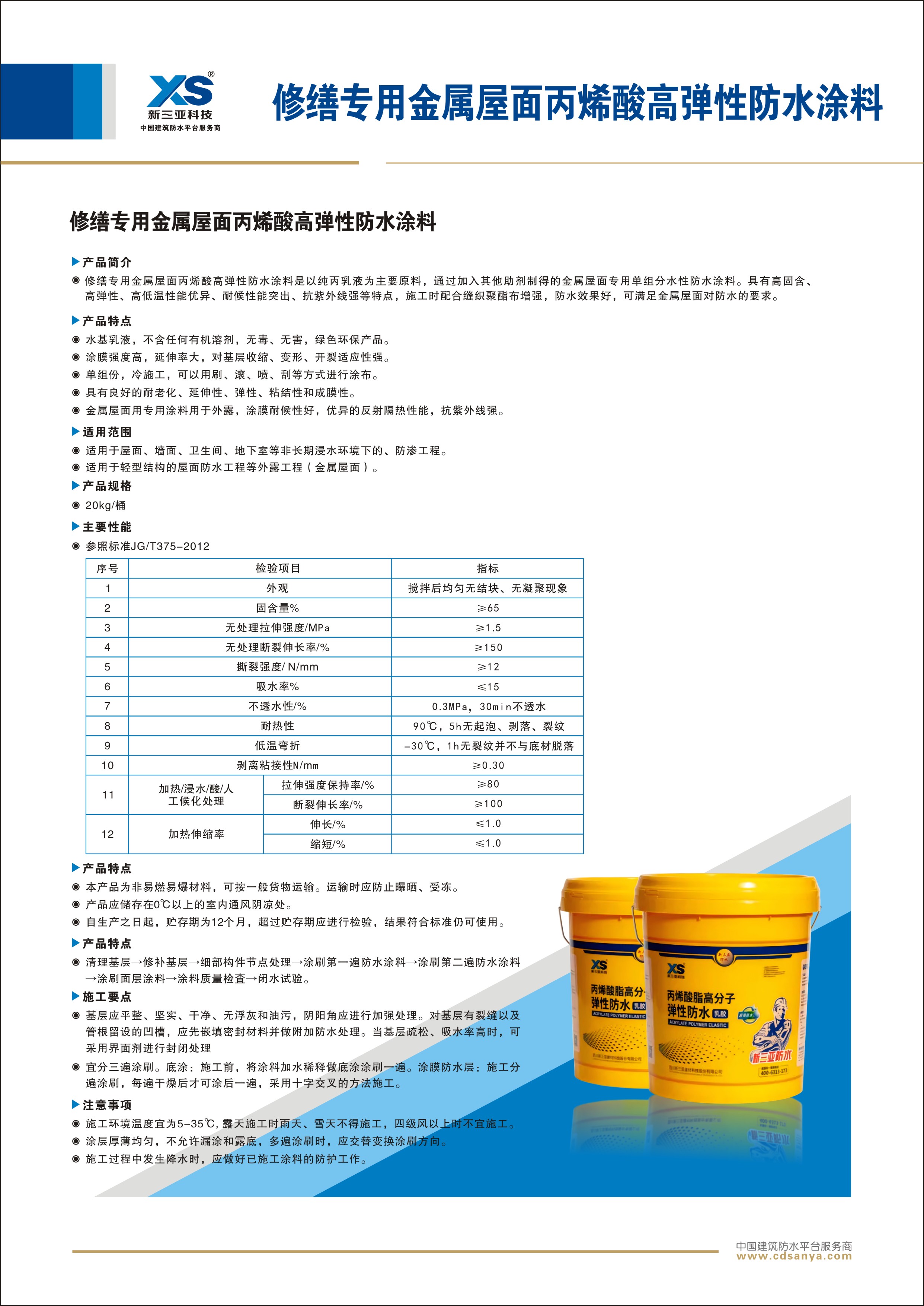 | 金屬屋面丙烯酸高彈性防水涂料 | |